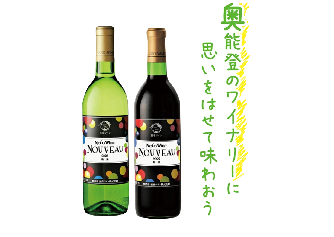 2025年産の能登産ヤマソーヴィニヨン種主体の赤はコクとほどよいタンニンで芳醇な味わい。同年産のシャルドネ種主体の白は爽やかでみずみずしい果実感が魅力。どちらも11月15日解禁。