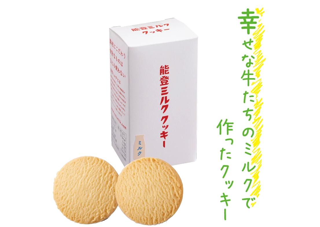 奥能登の酪農家が自家製完熟堆肥で育てた牧草を与えたノンストレスの乳牛から採れる、雑味のない素朴な味の能登ミルクを使用。アンテナショップ内では能登ミルクも販売。