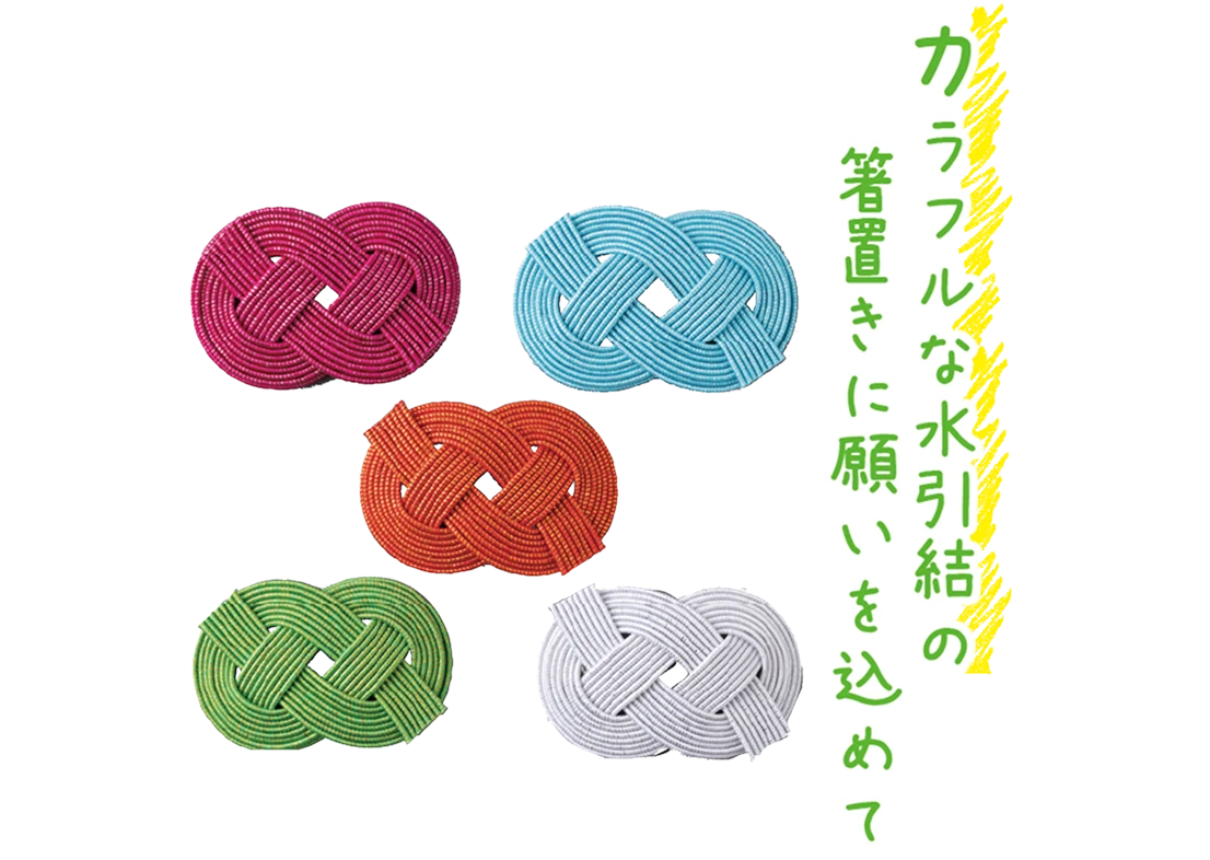 創造的な水引細工で知られる津田水引折型が手掛ける、日常使いできる雑貨。「オンリーワン」「末永く」を意味するあわじ結びを施した箸置きで幸せを呼び込もう。