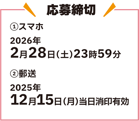●スマートフォンと郵送のそれぞれで応募した場合、いずれか片方の応募となります。