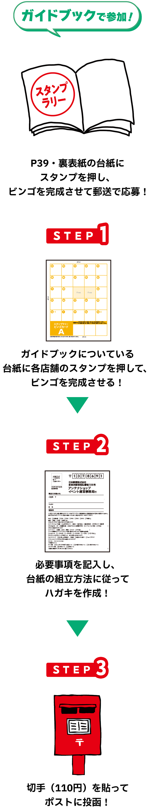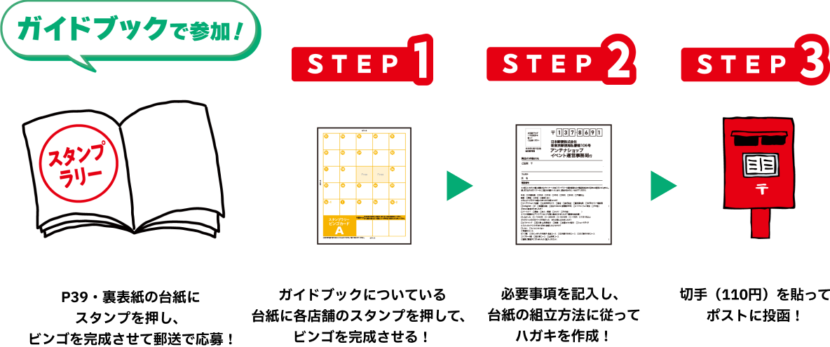 ●スタンプ押印場所に不備があるもの、郵便料金が不足しているものは無効となります。